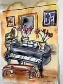 Ett annat återkommande motiv är kvinnor som till exempel spelar cello. Aldrig män?