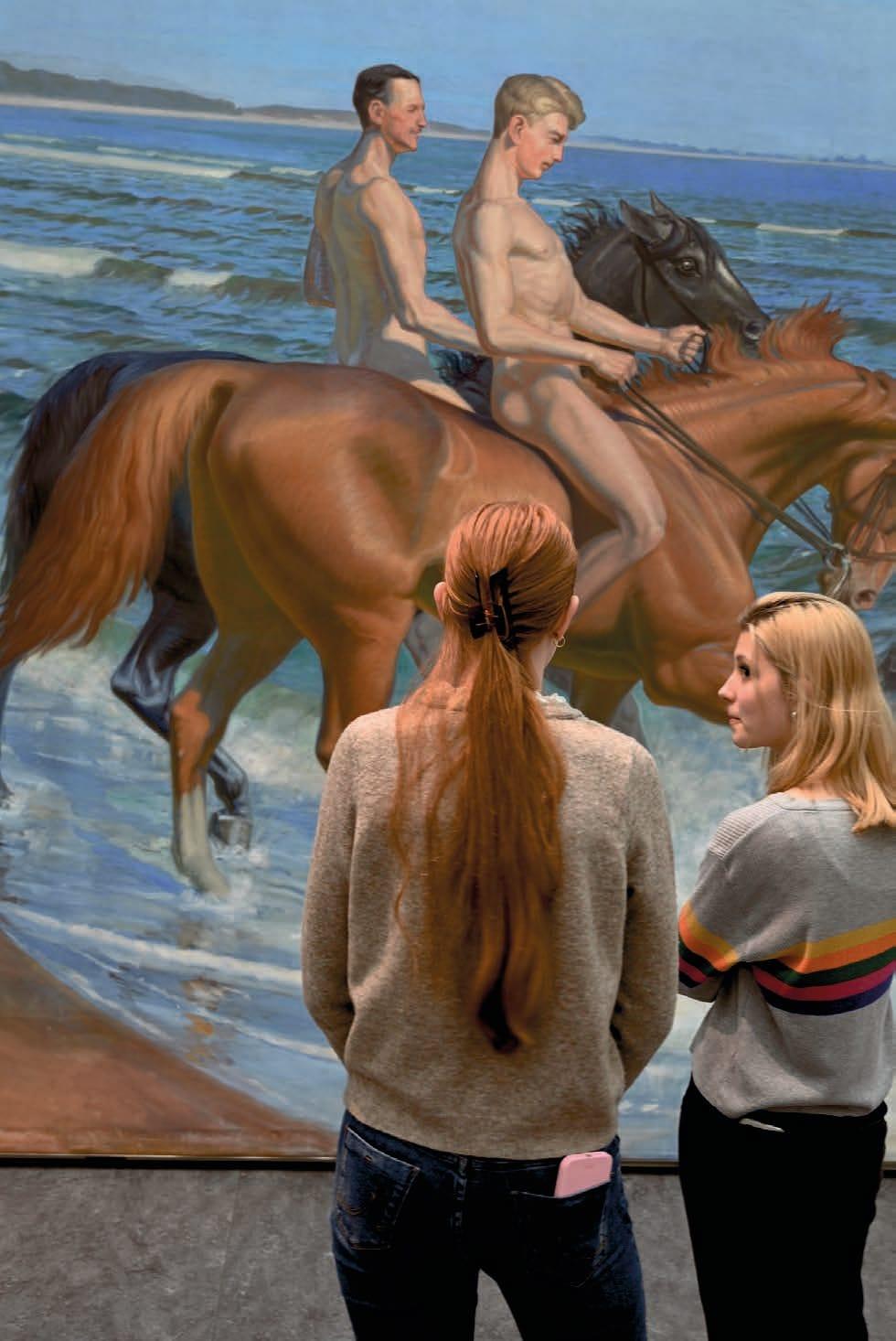 Ann-Margrete berättar att hon bara var en liten flicka i Ystad när hon brukade smita upp på bibliotekets övervåning. Där hängde den numera rikskända målningen ”Dragoner rida till bad”.
