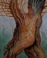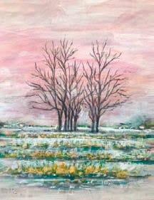 – Jag tecknar med kolstift. Men jag gör också oljemålningar som är figurativa. Och abstrakta landskap i akryl och mixed media, bland annat material jag hittar i naturen.