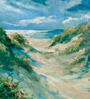 – Jag ville avbilda alla vackra platser jag besökt häromkring när jag gick på Österlenskolan, men jag ville röra mig bort från realismen. Jag ville måla landskapet, men inte måla av det.