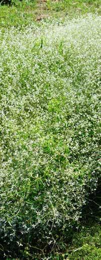 These Euphorbias are very finely textured, rambling annuals that present the appearance of a cloud of white in the landscape. Very wellsuited for the hot Texas summers, these unusual plants perform best as edging, ground cover and mixed container plants. Several varieties performed well in the Texas Superstar® trials, including “White Manaus,” “Breathless White,” “Silver Fog” and “Hip Hop.”