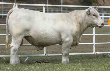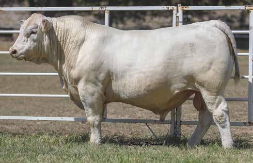 HERD SIRES LOT 5 5 FH AMERICAN MADE 1015 P ET BULL | 2/9/2021 | POLLED | EM972445 CE BW WW YW MK MCE MTL SC CW REA FAT MB TSI LT LEDGER 0332 P LT PATRIOT 4004 PLD LK MISS RIO 2119 LT BLUEGRASS 4017 P LT BRENDA 6120 PLD LK DISTANT RIO 900 LK MISS SILVER T 059 M6 COOL REP 8108 ET M6 MS COOL BELL 550 P ET M6 MS GAIN & GRADE 552 P M6 COOL DUDE 6463 P ET SR LADY EASE 914 ET M6 GRID MAKER 104 PET BCF MISS MAC 74 BW | 75 ADJ WW | 615 ADJ YW | 1207 SC | 39.5 7.4 -3.5 47 89 21 6.7 44 0.7 13 0.65 0.024 0.19 239 This could be the most unique herd bull prospect in the offering. He is calving-ease with style in a moderate package. His pedigree is different being a Patriot out of a full sister to Bells. He could work in a lot of places in the industry from club calf to purebred. Style, power and function best describe this bull and he will be an upgrade for most. He already has proven he is a survivor being born in the cold stretch of 2021 that I am sure everyone remembers. This young man is ready to walk. TOP 7% BW AND 20% MARB 6 FH PURE COUNTRY 1055 P ET BULL | 3/18/2021 | POLLED | EM963211 CE BW WW YW MK MCE MTL SC CW REA FAT MB TSI WCR KINGSBURY 116 P WCR COUNTY LINE 3132 P WCR MS NO QUESTION 1237 P EATONS VISIONARY 2044 P WCR MISS POWEREDGE 9132 P CFL NO QUESTION 732 KC MISS DESIGN 7593 P M6 BELLS & WHISTLES 258 P M6 MS BRAVO BELL 467 P ET M6 MS BRAVO GRID 844 ET M6 COOL REP 8108 ET M6 MS GAIN & GRADE 552 P LT RIO BRAVO 3181 P M6 MS GRID MAKER 2175 ET BW | 95 ADJ WW | 723 ADJ YW | 1203 SC | 36.6 0.8 1.8 72 109 16 2.1 52 0.4 22 0.52 0.030 0.17 241 This is probably the best County Line son raised at Fox Hollow to date. Power, style and a great cow family. His mother is one of the lead donors here; a $16,000 purchase as a six-monthold heifer. She was special from the beginning but being a Bells out of a full sister to New Standard probably made the decision to add her to the donor pen a little easier. The same family produced the high-selling bull in last year’s sale. This guy is a can’t miss prospect. TOP 7% WW AND 25% MARB LOT 6 OCTOBER 29, 2022 | AT THE RANCH | HULBERT, OKLAHOMA 5