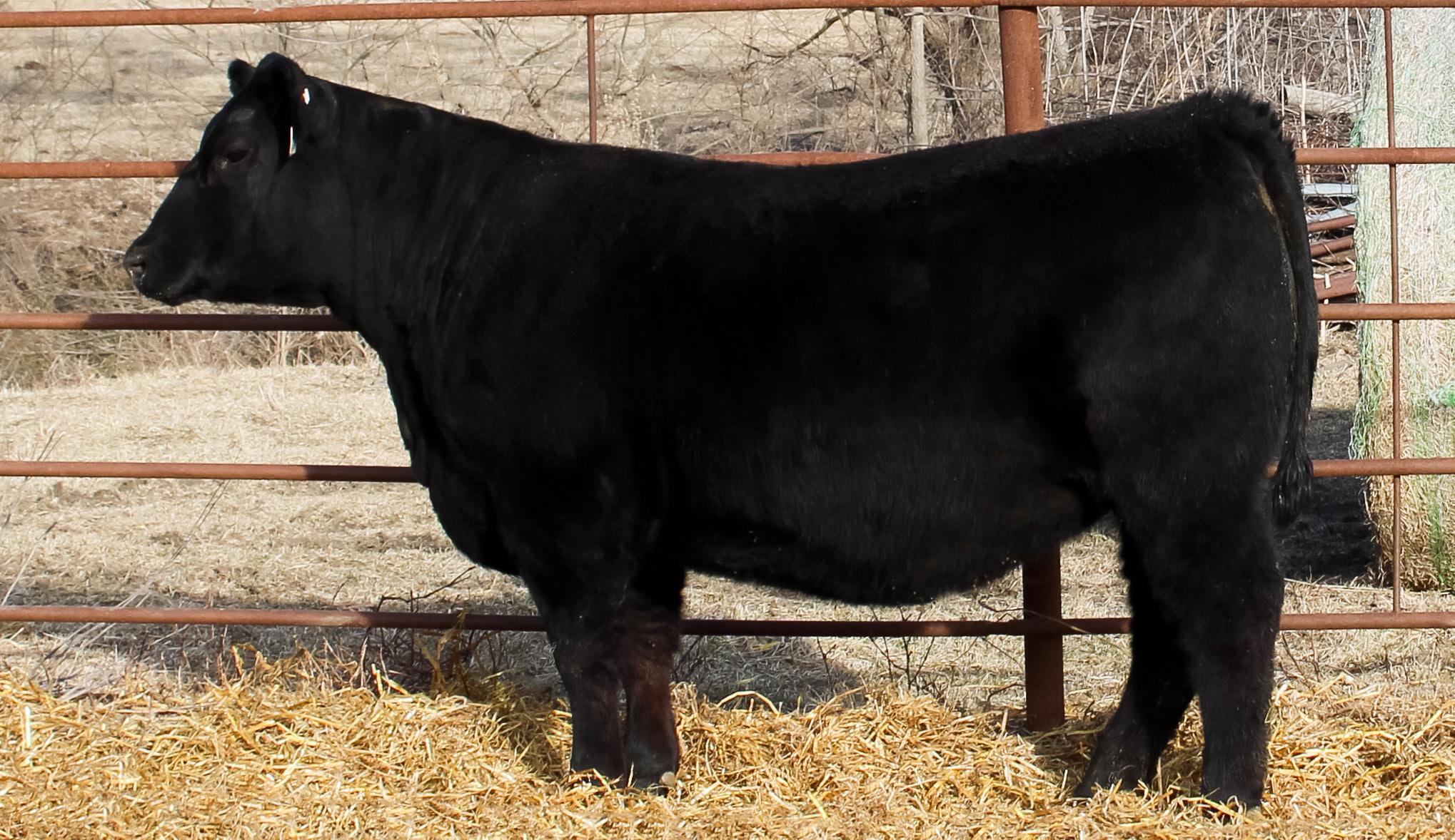 • A smooth made bull with a little extra frame!! He should sire those high growth steers and leave behind some awesome daughters. His International dam always brings home one of the top calves each fall!!