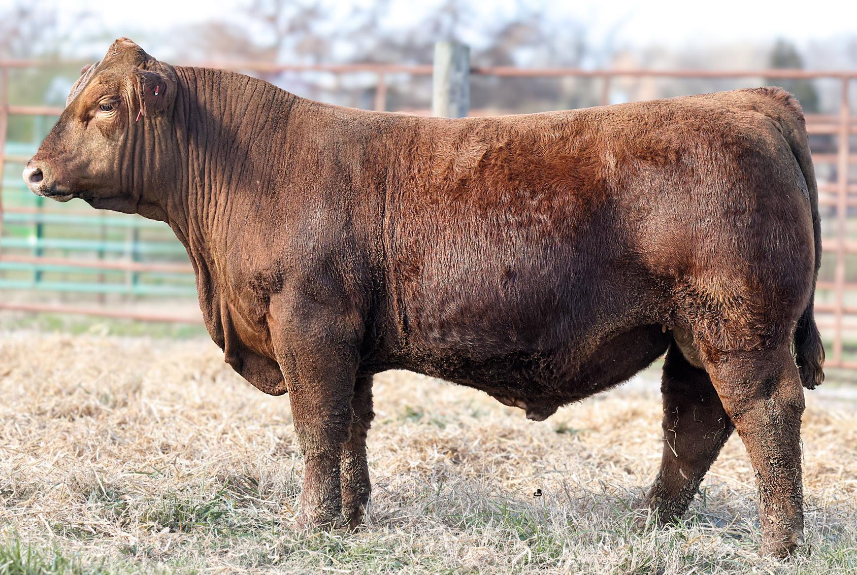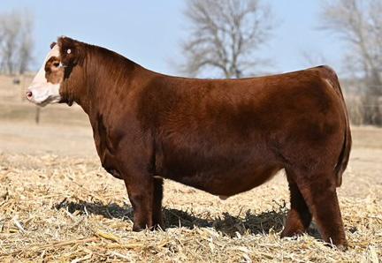 In our opinion, about as impressive of a purebred red herd sire prospect as you can find. This Red October son has not let off the accelerator since birth. Huge bodied, tremendous muscle shape, sound structured, and a data set that is hard to assemble. Top 10% REA; Top 20% Marbling, API, TI; Top 25% BW, YW, ADG.