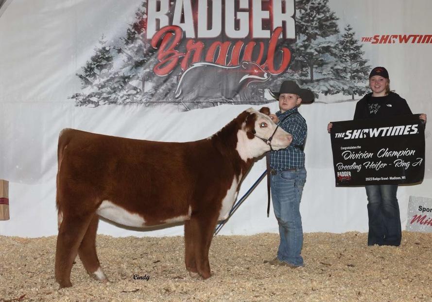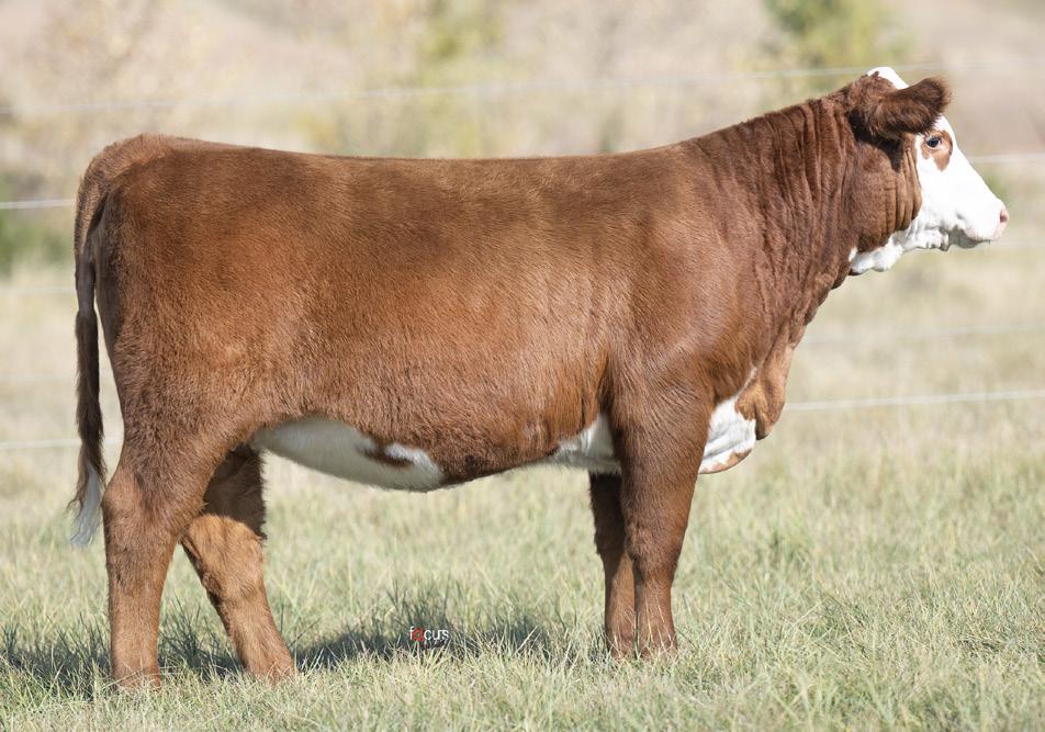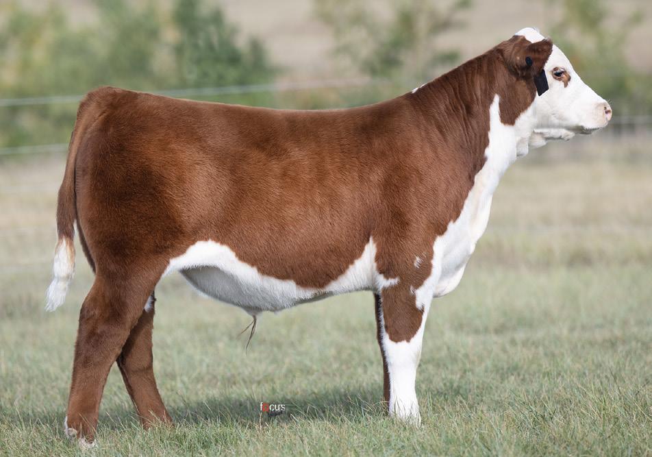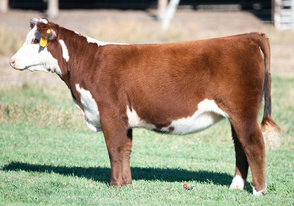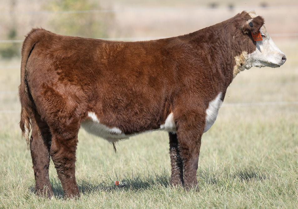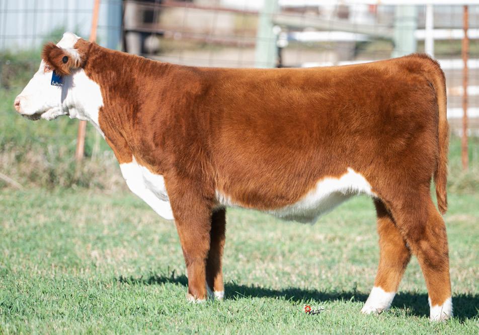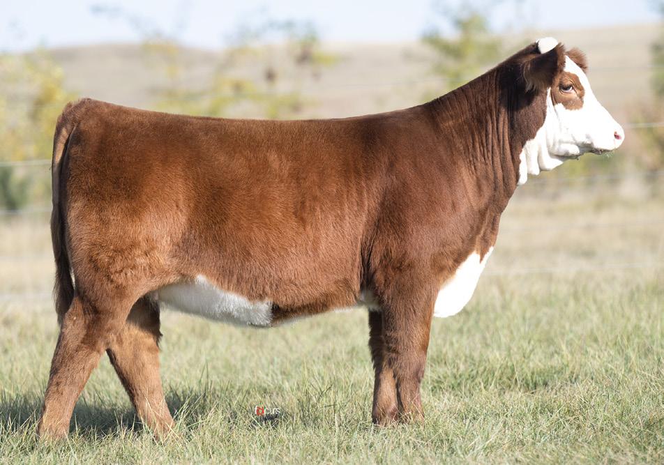 Maternal Sib to the 2024 Champion Horned Hereford Heifer at the Iowa State Fair. Very complete, dark pigment, polled heifer on an awesome set of feet and legs.
