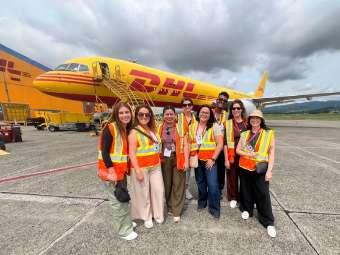 Tuvimos varias visitas de campo. Fuimos al Puerto de Balboa, al Aeropuerto Internacional de Tocumen, visitamos el hangar de DHL, donde incluso pudimos subir a un avión de carga, conocimos el Canal de Panamá y las instalaciones de Canal Movers, que nos recibieron increíble. También visitamos las oficinas de LACMA y convivimos con su equipo.