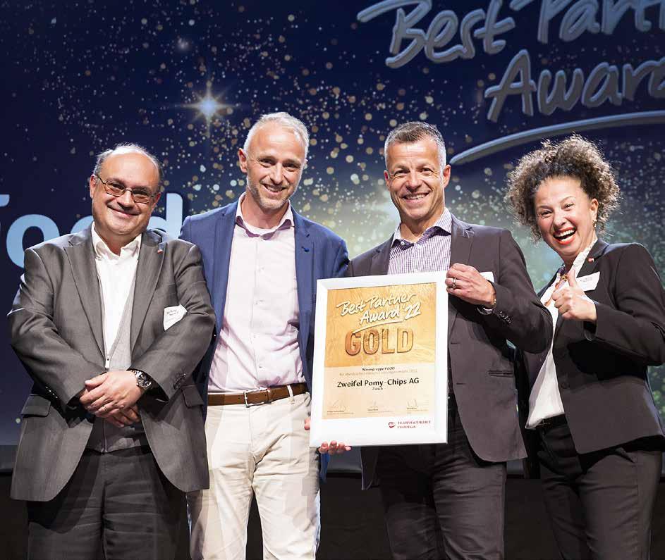Pour la 25e fois déjà, Transgourmet/Prodega procède à une évaluation de ses fournisseurs partenaires. Ceux-ci sont récompensés chaque année par un diplôme d’or, d’argent ou de bronze. Les entreprises Egli’s frische Küchenkräuter, Mauler & Cie SA, Hug AG, Duni AG et Zweifel Pomy-Chips AG se sont placées en tête du classement pour leurs performances particulières en 2022.