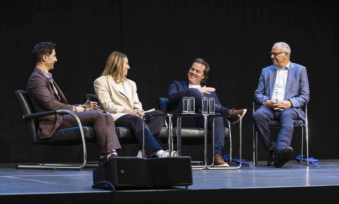 Table ronde avec l‘animateur Tobias Müller, la joueuse de l‘équipe nationale de handball Lea Schüpbach, l‘ancien skieur Marc Berthod et l‘ancien conseiller fédéral Adolf Ogi (de g. à dr.).