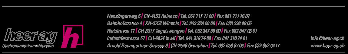 heer ag, 4153 Reinach, Tel. 061 717 11 00, info@heer-ag.ch, www.heer-ag.ch 3752 Wimmis, Tel. 033 336 66 08 8317 Tagelswangen, Tel. 052 347 08 00 6034 Inwil, Tel. 041 210 74 00 2540 Grenchen, Tel. 032 653 07 08