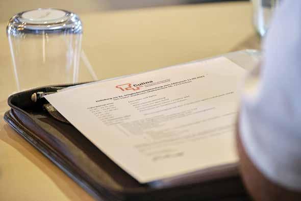 Berichte aus den Ressorts: Treffen mit Gastroplaner und Gourmet-Roundtable Marcel Früh berichtete über das Treffen mit den Schweizer Gastroplanern. Im Fokus standen Garantiebestimmungen und Effizienzstandards für Grossküchengeräte. Auch der Gourmet Roundtable – eine Diskussion unter Expertinnen und Experten zu aktuellen Gastro-Themen – war ein Höhepunkt. Das Thema «Immer mehr Gäste, immer weniger Personal – kann Technologie und Innovation die Personalknappheit mindern?» wurde für den nächsten Roundtable bestimmt. Man darf auf die fachkundigen Ausführungen der Culina-Mitglieder gespannt sein.