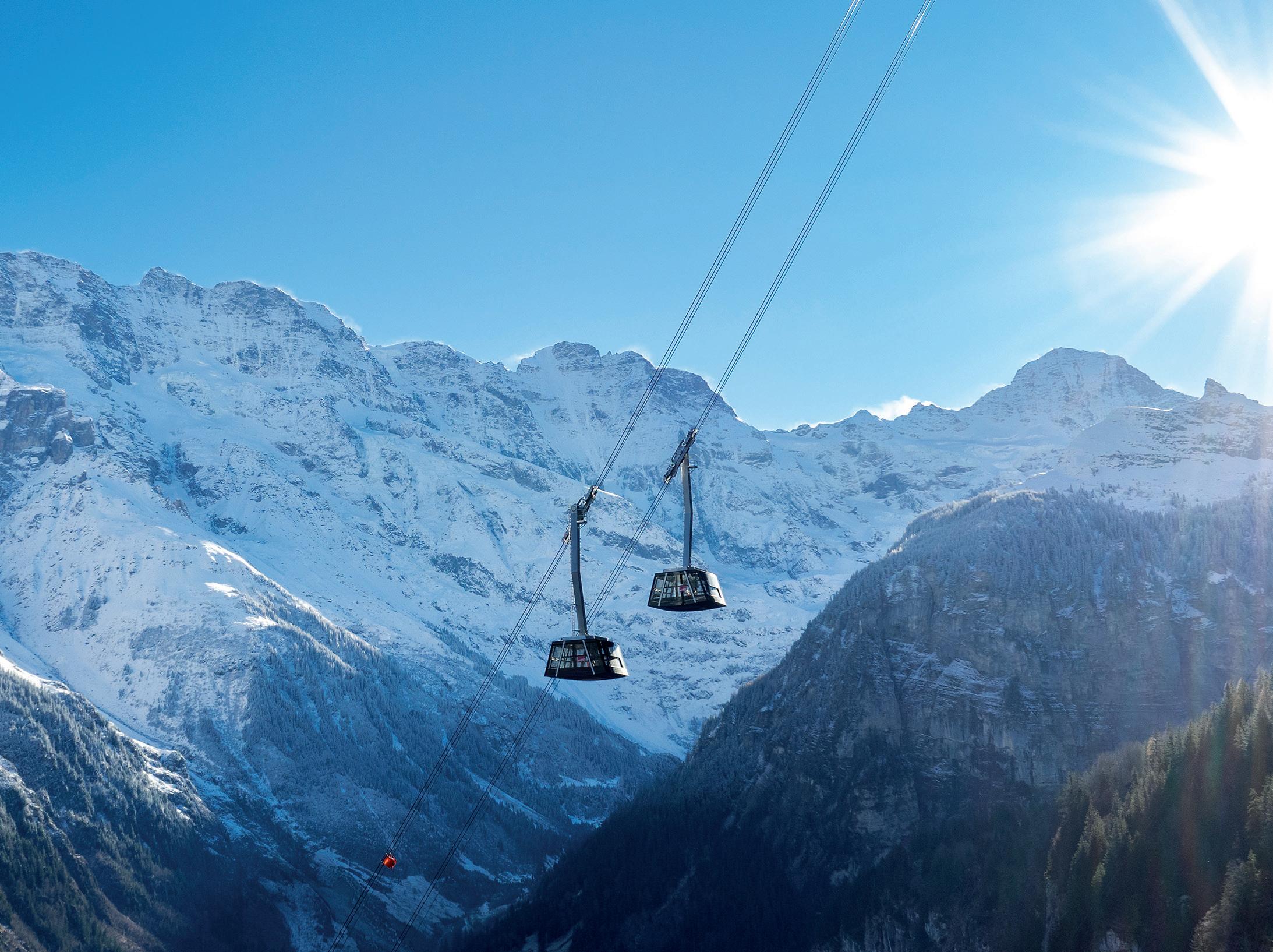 Die neue Direktverbindung zwischen Stechelberg und Mürren ist mit 159,4 Prozent Steigung die steilste Seilbahn der Welt.