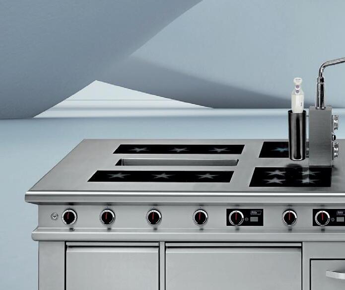 Le revêtement à induction d’épaisseur variable sur le fond de l’assiette, spécialement adapté aux propriétés physiques des bobines d’induction, garantit un réchauffement uniforme des aliments sur l’assiette.