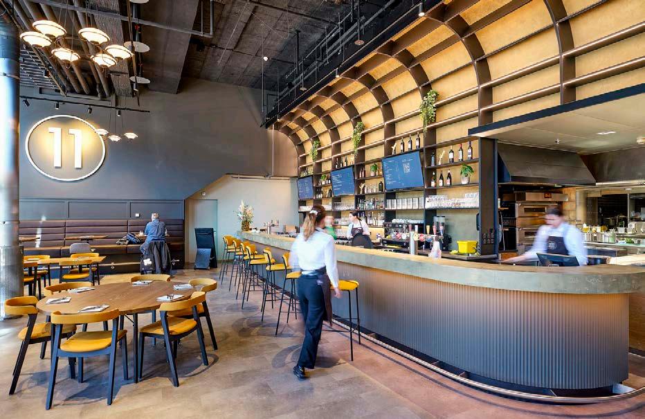 Le restaurant «eleven», situé au stade du Wankdorf à Berne, démontre comment deux concepts peuvent cohabiter: conçu pour les passionnés de football, il rompt délibérément avec les clichés habituels d’un bar de supporters et séduit également en tant que restaurant élégant grâce à son aménagement modulaire. Ce club local mise résolument sur des partenaires locaux, y compris pour l’architecture d’intérieur.