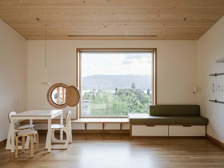 Lorsque l’on se trouve aujourd’hui devant le nouvel hôpital pédiatrique universitaire de Zurich, on voit du bois – beaucoup de bois. Ce matériau clair et chaud est un leitmotiv dans l’architecture adaptée aux enfants. Là où les façades froides et la fonctionnalité dominent souvent, l’hôpital pour enfants inspire la sécurité et le calme. Ici, rien n’est laissé au hasard: la lumière, les couleurs, les matériaux et la végétation s’imbriquent harmonieusement et créent une atmosphère qui favorise la guérison et le bien-être. Le nouvel hôpital pédiatrique a ouvert ses portes en novembre 2024 et est bien plus qu’un bâtiment de remplacement: il est tourné vers l’avenir et allie médecine de pointe et proximité humaine. 114 chambres individuelles et à deux lits avec un total de 200 lits pour les patients offrent calme et retraite, les couloirs clairs favorisent l’orientation et la légèreté. Les professionnels disposent de suffisamment d’espace et de l’infrastructure nécessaire pour pouvoir exercer leur précieuse activité. Ici, tout