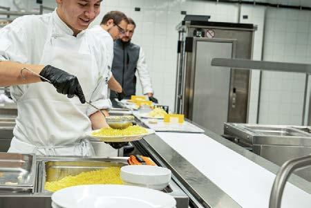 et frais. Ils veillent à un équilibre sain et tiennent compte des besoins individuels: allergies, consistances, appétit – tout est repensé chaque jour. Curdin Baggio et son équipe sont assez libres dans l’élaboration des menus. Il peut arriver qu’ils produisent des pâtes fraîches et les servent avec de la salsiccia. Mais des roulades de bœuf ou un curry végétarien apportent également de la variété dans la planification des menus. Ce qui arrive dans l’assiette est donc choisi en connaissance de cause. Environ 1500 repas quittent chaque jour la cuisine: pour les enfants, les parents, les collaborateurs. Une prouesse logistique qui ne peut être réalisée qu’avec une planification précise et un soutien technique.