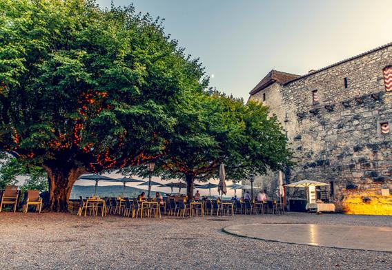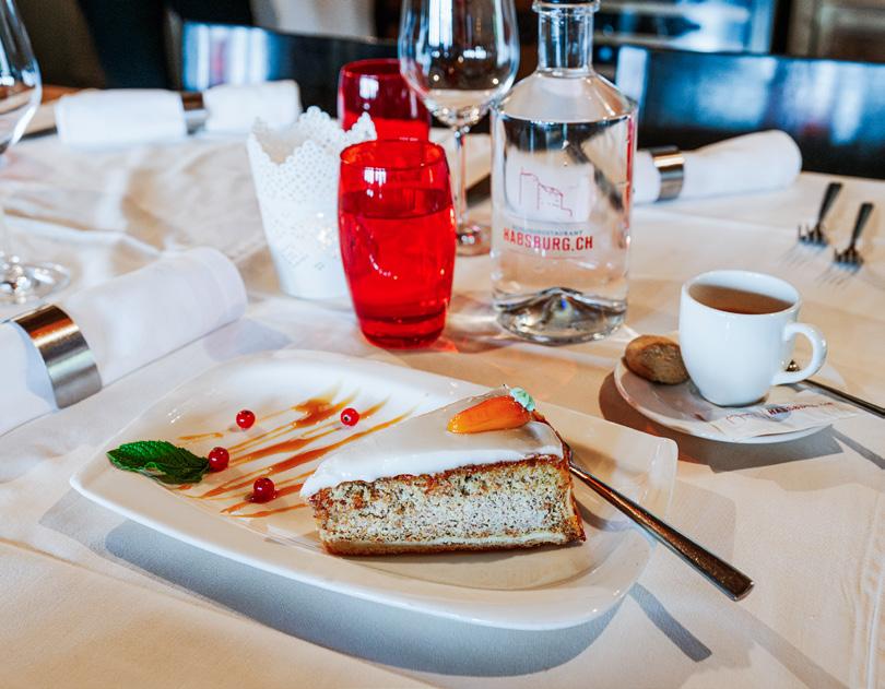 Haute gastronomie dans un cadre historique: Le château de Habsbourg dans le canton d Argo ie un ser ice ef cace pour un café de grande qualité.