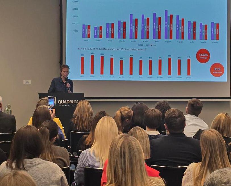 Vilnius vis ryškiau matomas pasaulio keliautojų žemėlapyje. Remiantis turistų rinkliavos sistema, 2025 m. nakvynių skaičius augo 3 proc., turizmo sukuriama ekonominė nauda miestui pasiekė 900 mln. eurų. Praėjusiais metais sostinėje įvyko daugiau nei 790 tarptautinių konferencijų – tai ketvirtadaliu daugiau nei 2024 m.