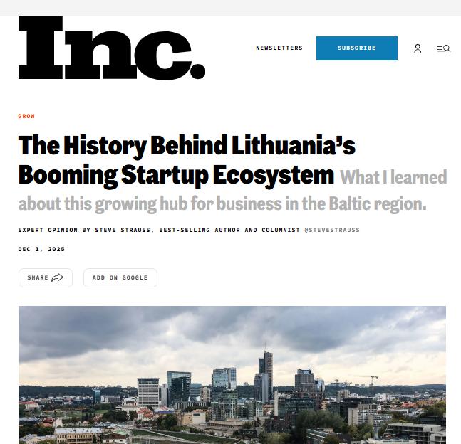 Sostinės startuoliai pritraukė 212 mln. eurų rizikos kapitalo – 60 proc. daugiau nei metais anksčiau, o bendra ekosistemos vertė pasiekė 15,5 mlrd. eurų. Tai aiškus signalas, kad Vilnius nuosekliai stiprina savo pozicijas kaip inovacijų ir technologijų centras regione. Kryptingą augimą patvirtino ir tarptautinis įvertinimas – „fDi Intelligence“ apdovanojimas už geriausią tiesioginių užsienio investicijų strategiją savo kategorijoje.