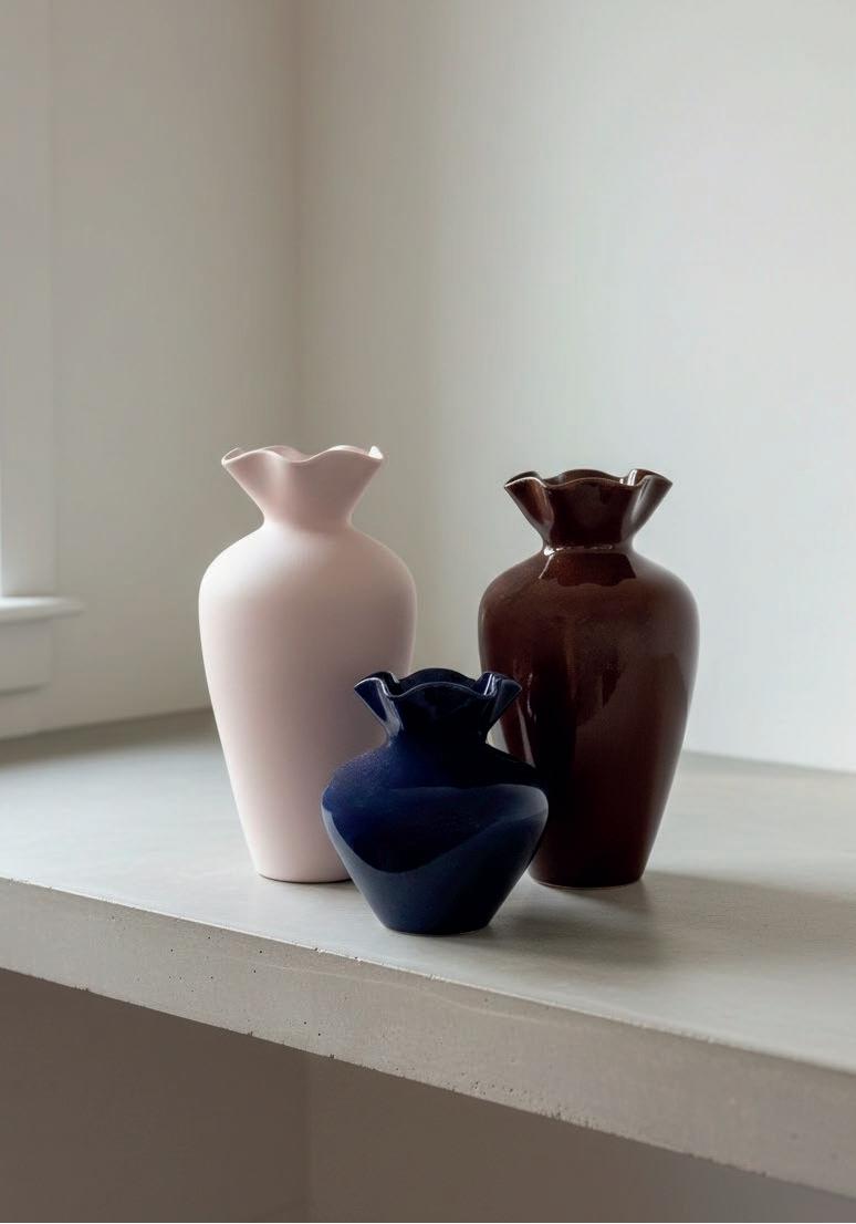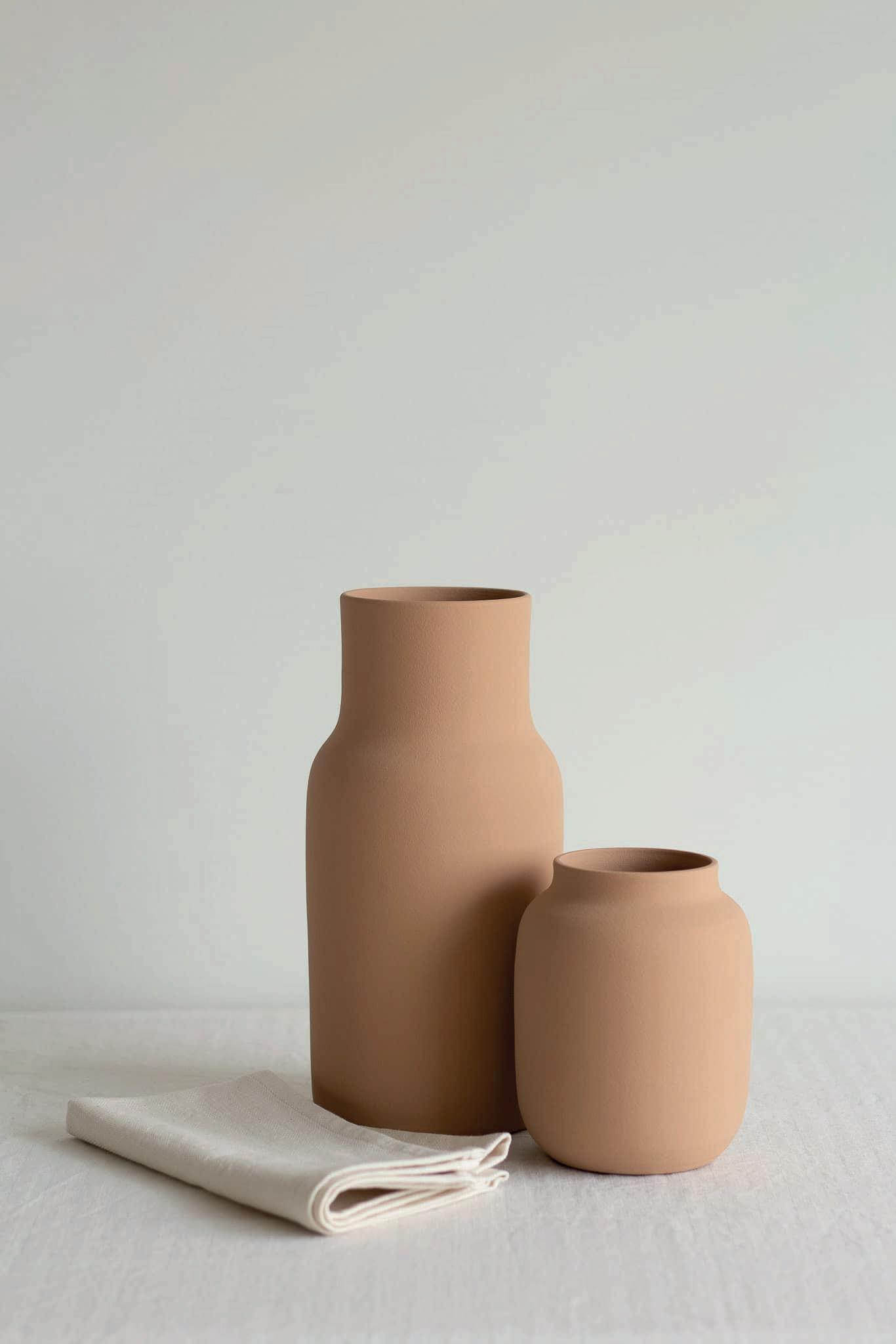 Our handmade vases, crafted from natural clay, are beautifully unique and designed to be waterproof, though slight variations may occur due to the artisanal process.