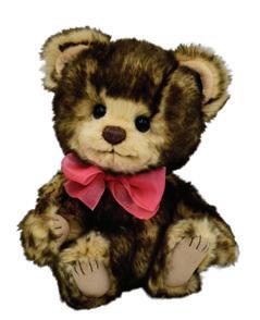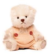 This charming growler bear wears a velvet bow tie, with striped braces and smart wooden buttons. Made of caramel-tipped, high-quality mohair. 5-way jointed.
