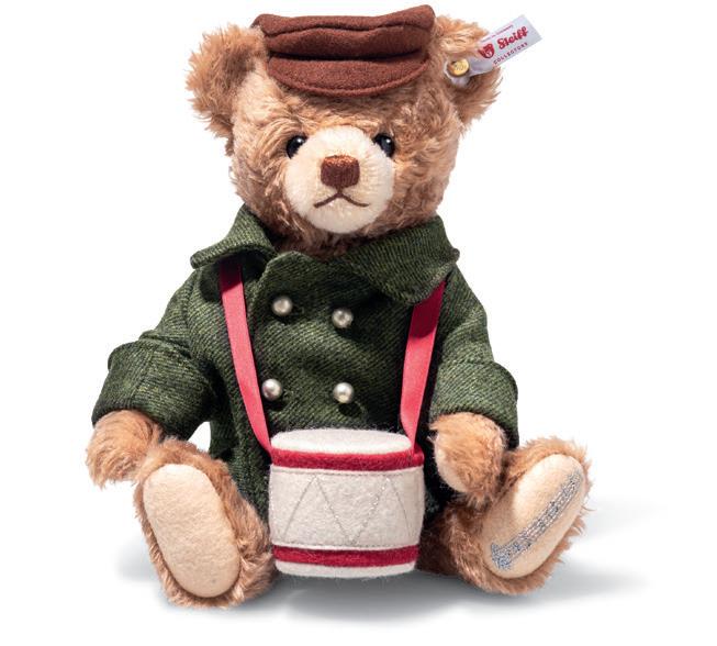 “Little Drummer Boy”, originally titled ”Carol of the Drum”, is a popular Christmas song written by American composer Katherine Kennicott Davis in 1941. First recorded in 1951 by the Austrian Trapp Family, the song was further popularized by so many wonderful renditions including Frank Sinatra, Ringo Starr, Boney M and even a duet by the unusual pairing of Bing Crosby and David Bowie. Now it is portrayed as the heartbeat of this hugely favoured Little Drummer Boy musical Teddy bear. When a poor young boy was summoned to visit Jesus, he was worried he had no gift for the infant. So the Little Drummer Boy played his drum which received great approval, recalling, ”I played my best for him” and ”He smiled at me”. Dressed in a handsome double-breasted buttoned jacket and smart hat, without doubt you will smile too when your Little Drummer boy plays to you.
