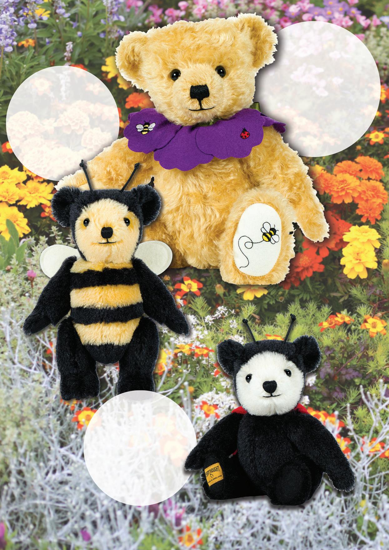 Crafted from the finest honey-gold coloured mohair plush and wool felt, Bumble wears a pure wool felt ‘petal’ collar, which is secured with a forest green satin ribbon. Delicate Bumble Bee and Ladybird embroidery completes this elegant accessory and is repeated on the paws.