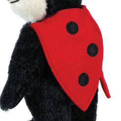 Little Ladybird is crafted from the finest black and white short mohair and features a pure wool felt ladybird ‘shell’ adorned with embroidered spots, and a pair of ‘antennae’ to finish.