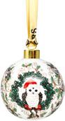 A majestic Emperor Penguin family bow over their adorable baby chick to bring Antarctica’s landscape onto this globe shape bauble.