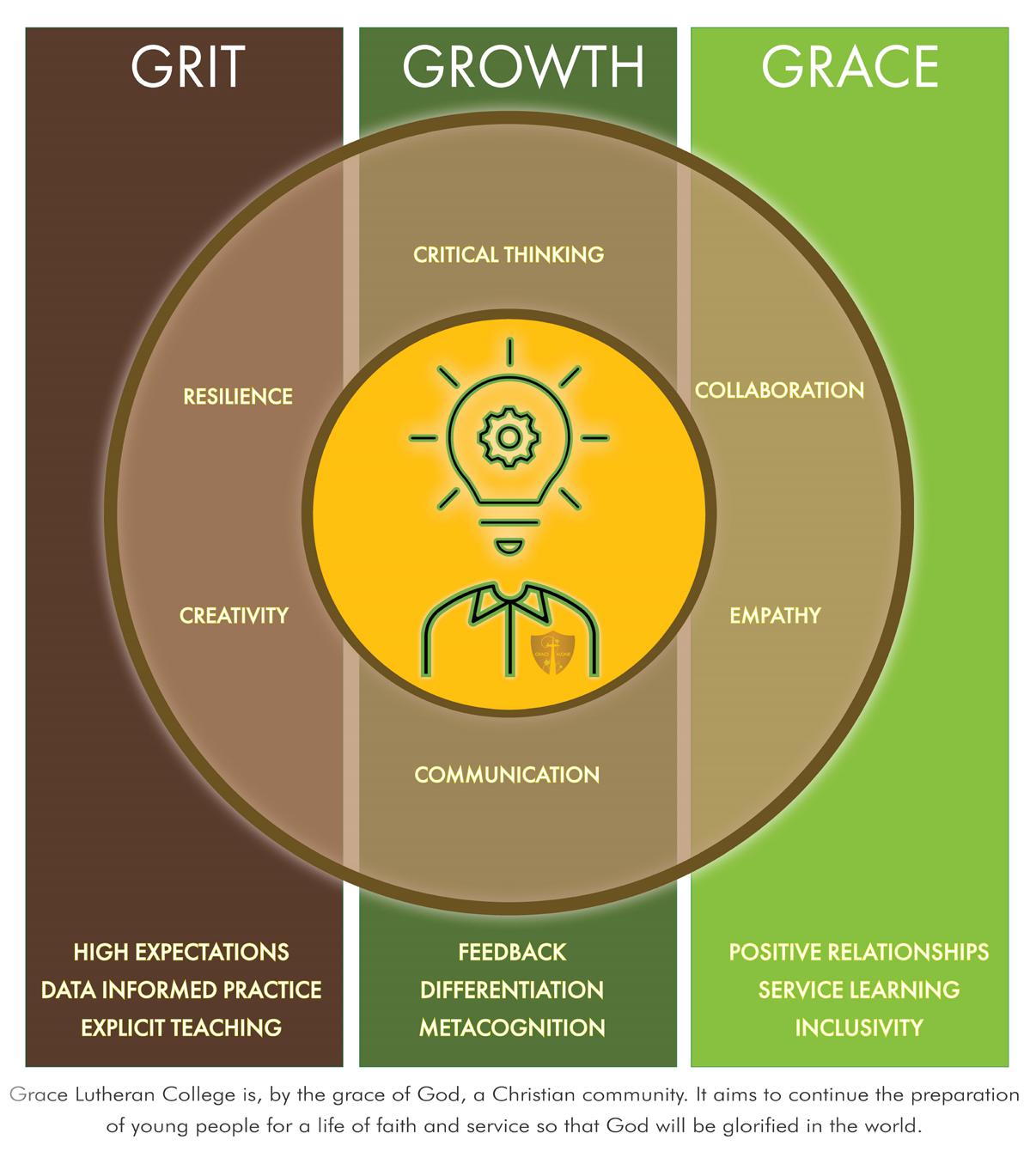 • Grit – Through perseverance, problem solving, and responsible risktaking.