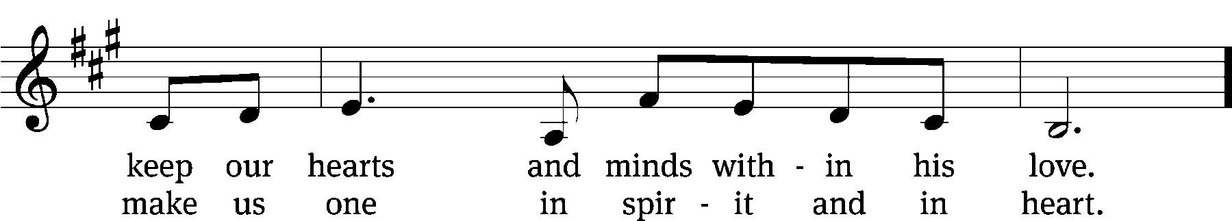 Our Father in heaven, hallowed be your name, your kingdom come, your will be done on earth as in heaven. Give us today our daily bread. Forgive us our sins, as we forgive those who sin against us. Lead us not into temptation, but deliver us from evil. For the kingdom, the power, and the glory are yours now and forever. Amen.