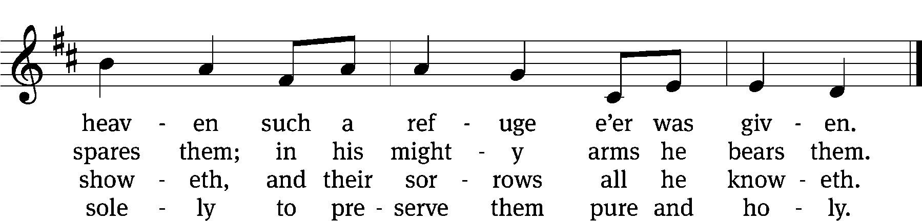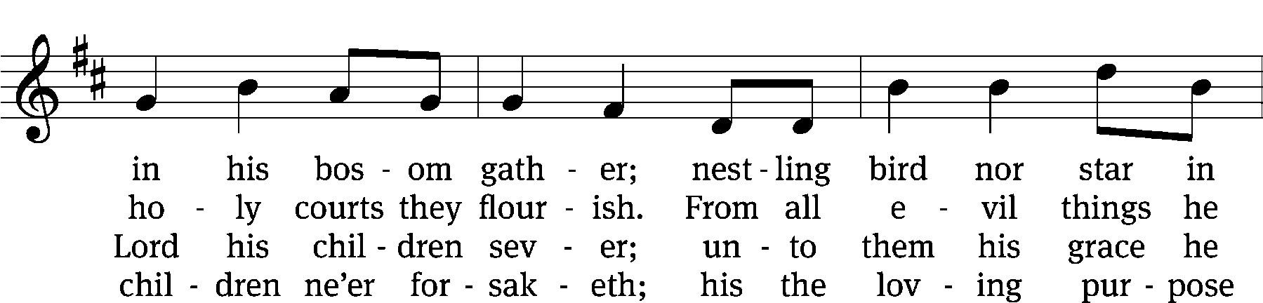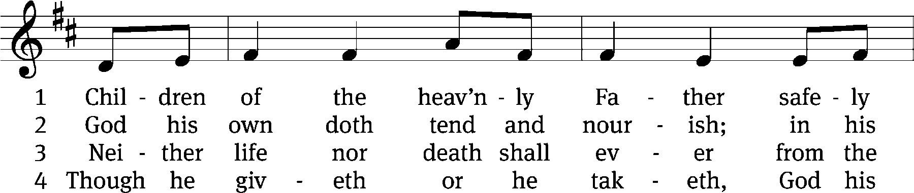 Text: Carolina Sandell Berg, 1832–1903, abr.; tr. Ernst W. Olson, 1870–1958 © 1925 Board of Publication, Lutheran Church in America, admin. Augsburg Fortress. Used by permission: OneLicense no. 710199. Tune: Lofsånger och andeliga wisor, Sweden, 1873. Public domain.
