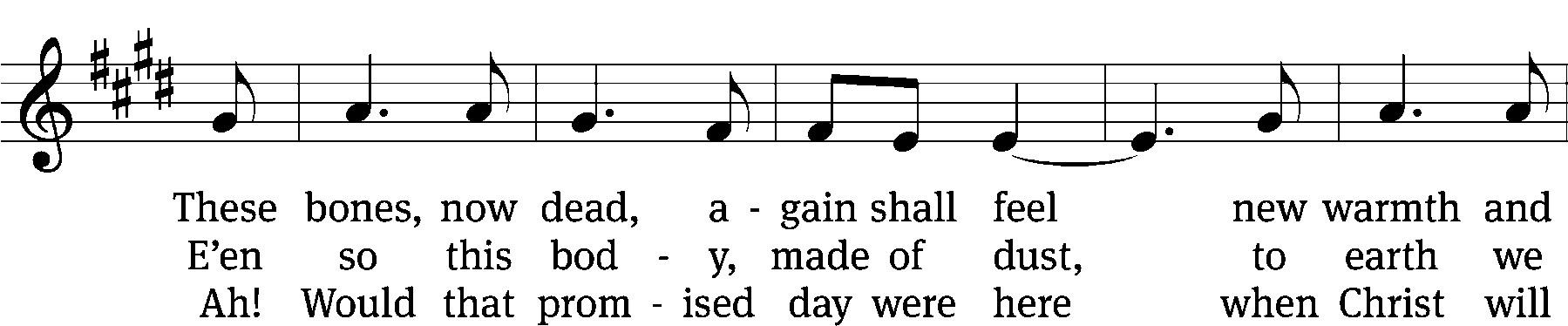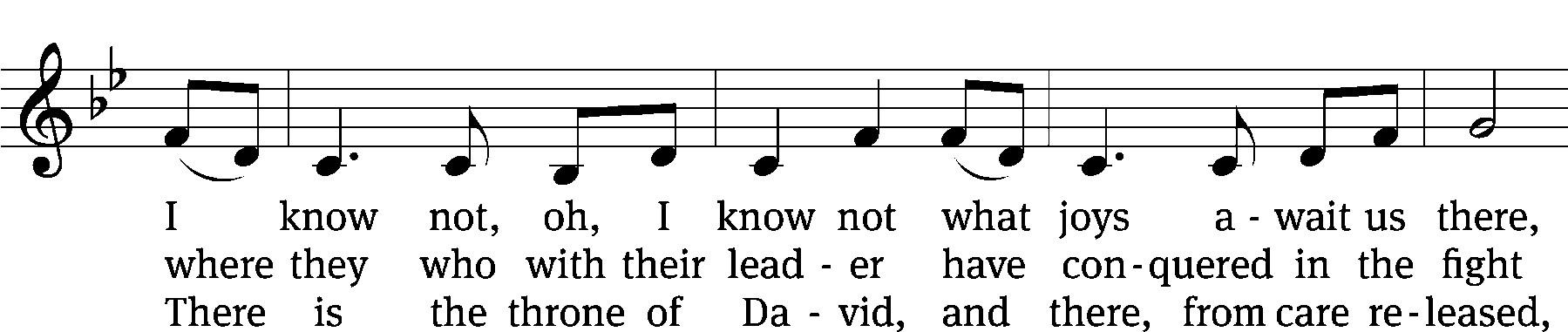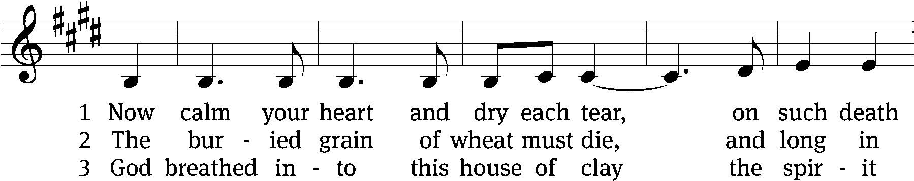 Text: Ernst C. Homburg, 1605–1681, abr.; (sts. 1, 7): tr. Catherine Winkworth, 1827–1878, alt.; (st. 6): tr. Evangelical Lutheran Hymn-Book, 1912, alt. Tune: Das grosse Cantional, Darmstadt, 1687, alt. Text and tune: Public domain.