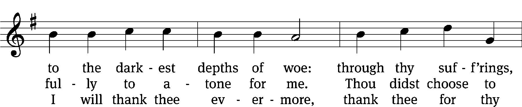 Out of the depths I cry to / you, L ; Lord, / hear my voice. Let your ears be at- / tentive to my cry for / mercy. If you, L , kept a record of sins, Lord, / who could stand? But with you there is forgiveness, so that we can, with reverence, / serve you.