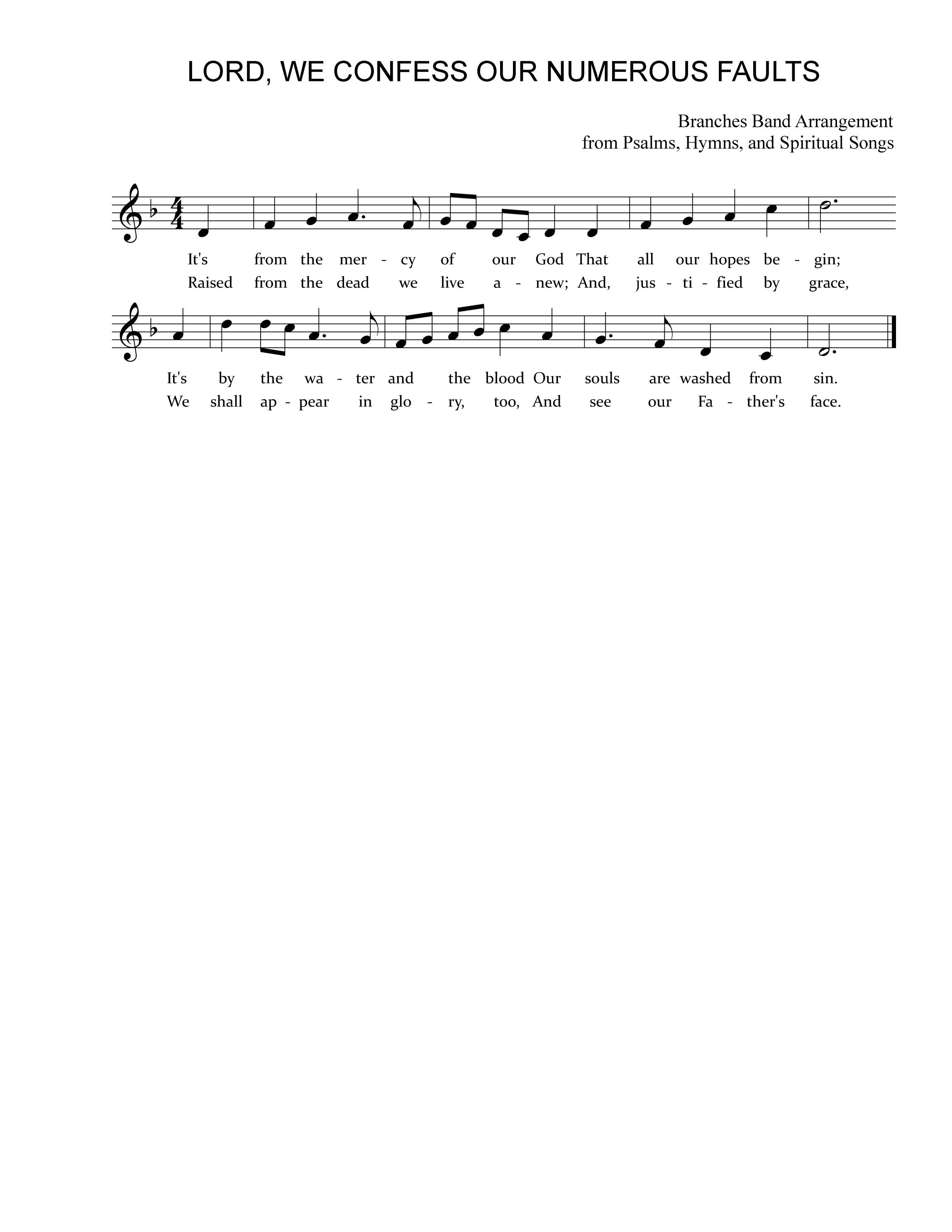 Choir: Lord, we confess our num’rous faults, how great our guilt has been, How vain and foolish all our thoughts, how deeply stained with sin.