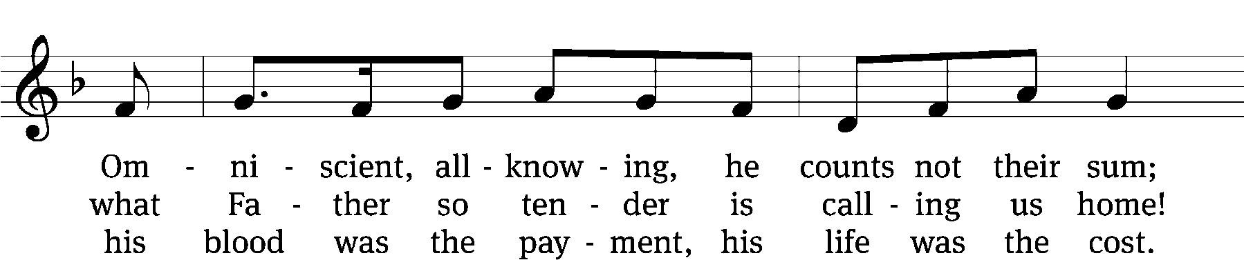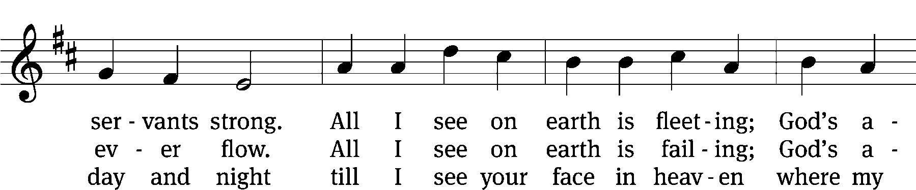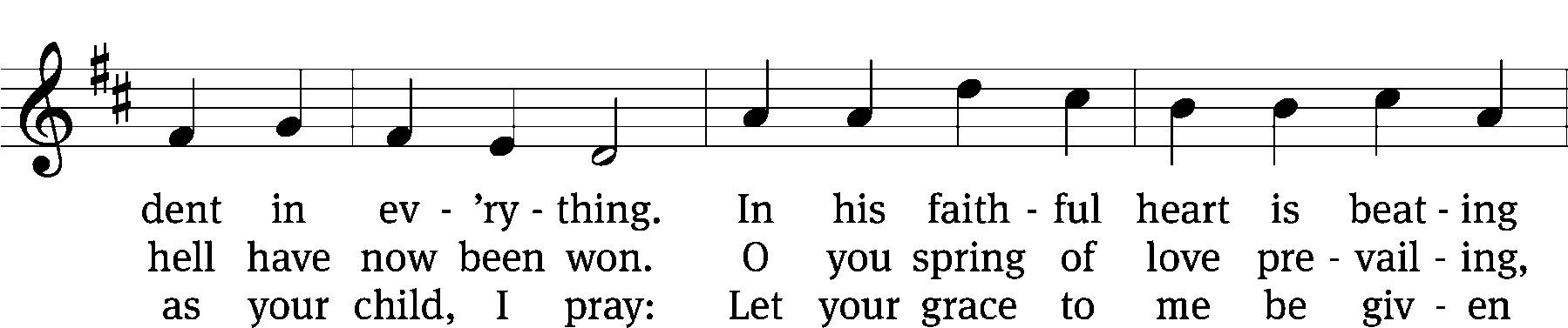 Our Father in heaven, hallowed be your name, your kingdom come, your will be done on earth as in heaven. Give us today our daily bread. Forgive us our sins, as we forgive those who sin against us. Lead us not into temptation, but deliver us from evil. For the kingdom, the power, and the glory are yours now and forever. Amen.