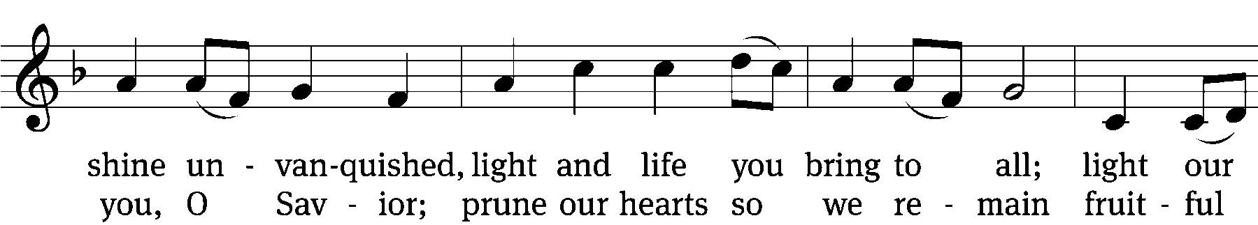Our Father in heaven, hallowed be your name, your kingdom come, your will be done on earth as in heaven. Give us today our daily bread. Forgive us our sins, as we forgive those who sin against us. Lead us not into temptation, but deliver us from evil. For the kingdom, the power, and the glory are yours now and forever. Amen.