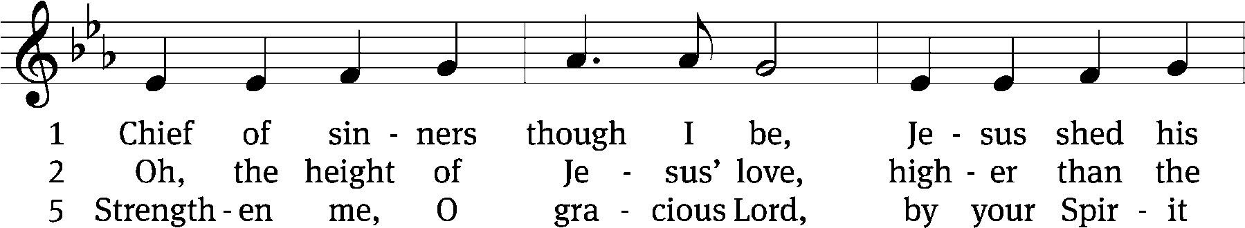 During the singing of this hymn, children ages 1-8 are excused to attend Children’s Church in the CLC Building. Parents can pick-up their children there following the service.