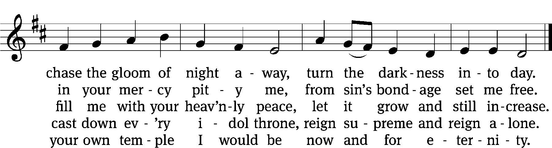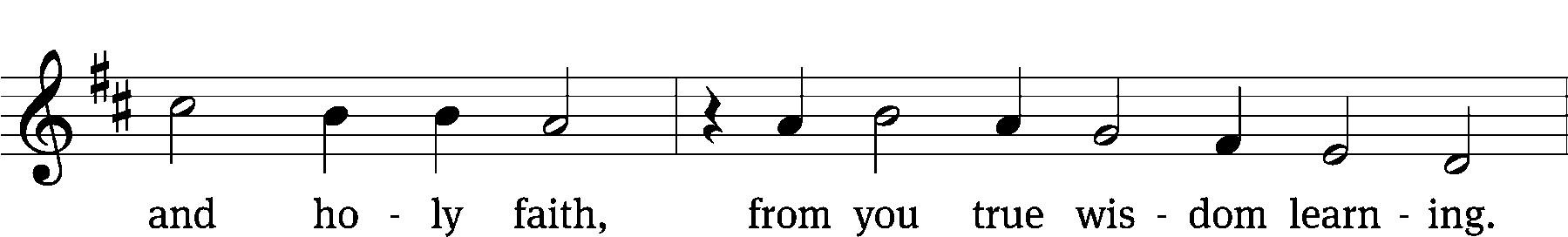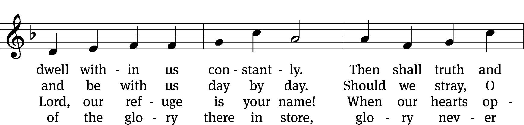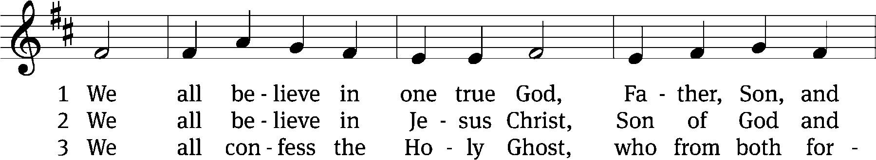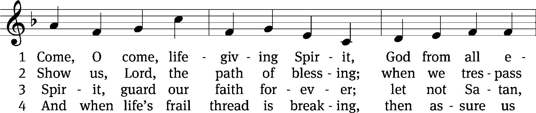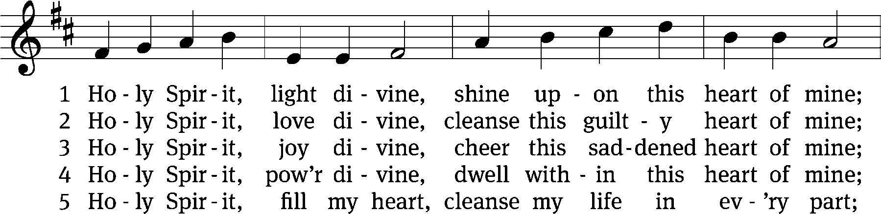 BriefÊintercessoryÊ prayersÊmayÊbeÊaddedÊ inÊaÊfittingÊplace. TheÊboldedÊwordsÊ comeÊfromÊLuther’sÊ ExplanationÊtoÊtheÊ ThirdÊArticleÊofÊtheÊ Apostles’ÊCreedÊasÊ foundÊinÊtheÊSmallÊ Catechism.ÊTheyÊserveÊ asÊaÊreminderÊofÊtheÊ workÊofÊtheÊHolyÊSpiritÊ andÊaÊconfessionÊofÊ ourÊfaithÊinÊHim.