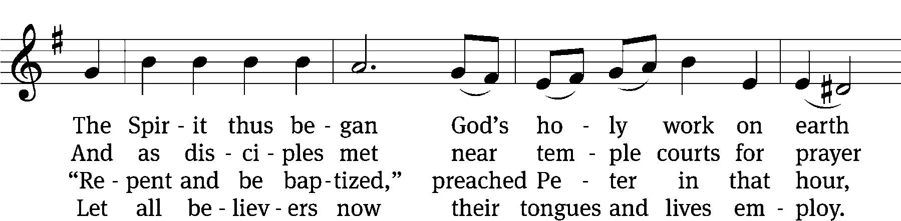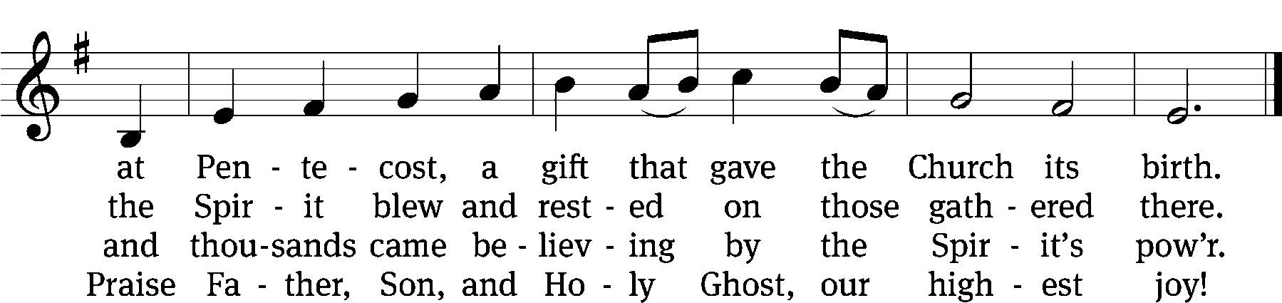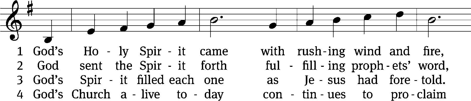 Holy Spirit, God and Lord, come to us this joyful day with your sevenfold gift of grace. Rekindle in our hearts the holy fire of your love that in a true and living faith we may tell abroad the glory of our Savior, Jesus Christ, who lives and reigns with you and the Father, one God, now and forever. Amen.