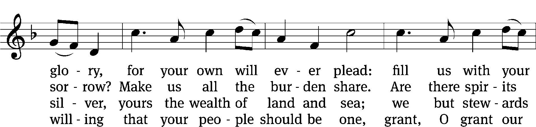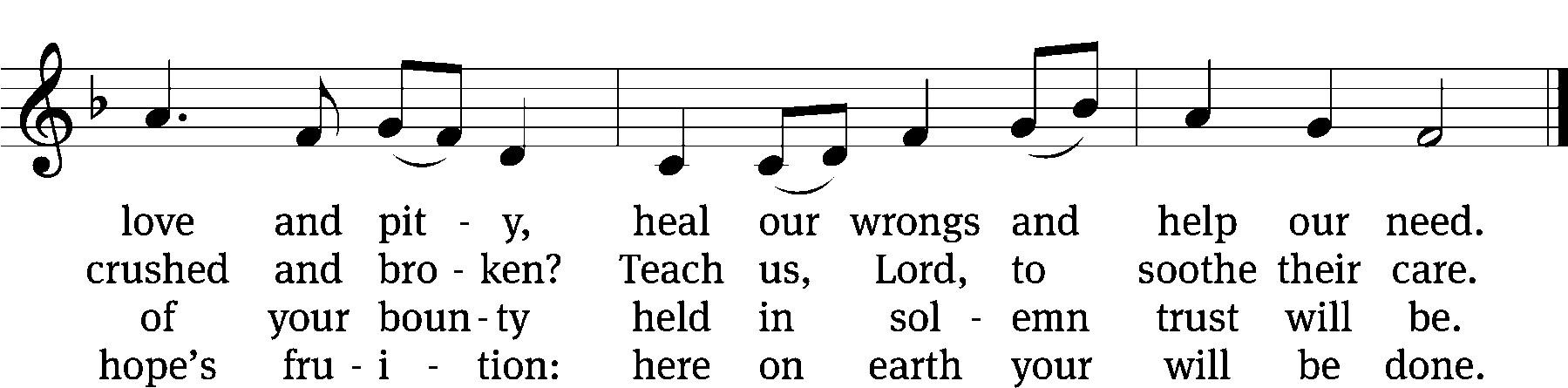 Our Father in heaven, hallowed be your name, your kingdom come, your will be done on earth as in heaven. Give us today our daily bread. Forgive us our sins, as we forgive those who sin against us. Lead us not into temptation, but deliver us from evil. For the kingdom, the power, and the glory are yours now and forever. Amen.