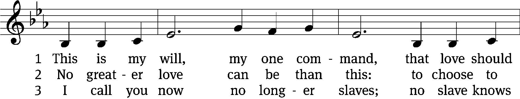 12 “This is my command: Love one another as I have loved you. 13 No one has greater love than this: that someone lays down his life for his friends. 14 You are my friends if you continue to do the things I instruct you. 15 I no longer call you servants, because a servant does not know what his master is doing. But I have called you friends, because everything that I heard from my Father, I have made known to you. 16 You did not choose me, but I chose you and appointed you to go and bear fruit, fruit that will endure, so that the Father will give you whatever you ask in my name. 17 These things I am instructing you, so that you love one another.”