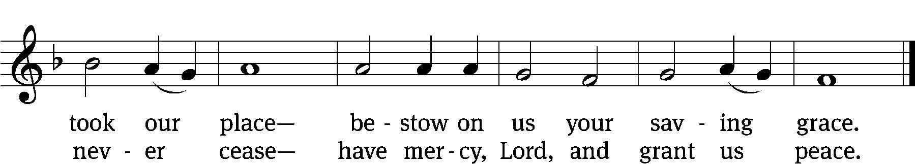 God, our merciful Father, has forgiven all our sins. He sent his Son, Jesus Christ, to be our Redeemer and Savior. Jesus paid the penalty for our guilt by his death on the cross and freed us from death by his resurrection from the grave. We have peace with God now and forever.