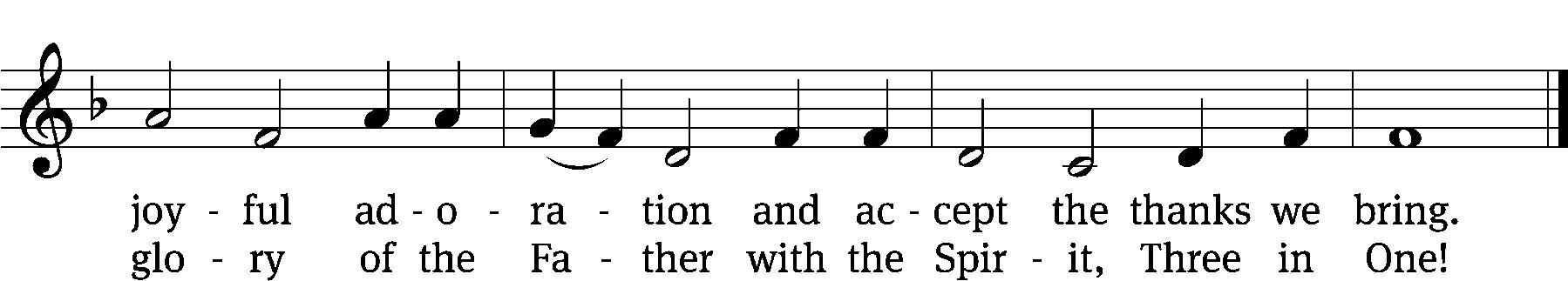 Bless us as we receive your Son’s body and blood, and lead us to remember his suffering, death, and resurrection. Forgive our sins and fill us with the hope of new life in heaven. Hear our praise and receive our thanks as we worship you the Father, the Son, and the Holy Spirit.