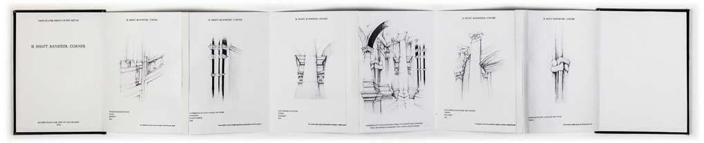 Drawings composed of collaged architectural elements begin to construct surreal, fantastical spaces composed of infinite stairways, blocked passages, and labyrinths of cornices. The drawings were then constructed into a series of three accordion books, each documenting the elements used to compose the drawings. The books were exhibited in Cornell University’s Herbert F. Johnson Museum as part of their artist’s book exhibition in 2021.