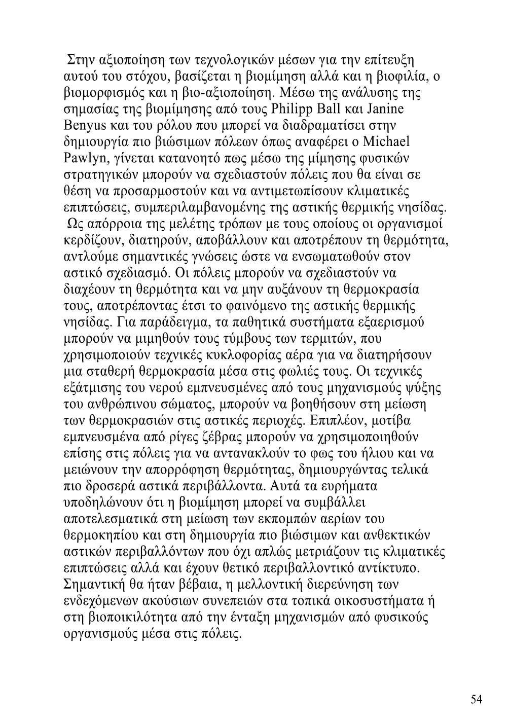 E104.24 | Ο βιομιμητικός σχεδιασμός ως φυσική στρατηγική στην αντιμετώπιση της αστικής θερμικής νησί
