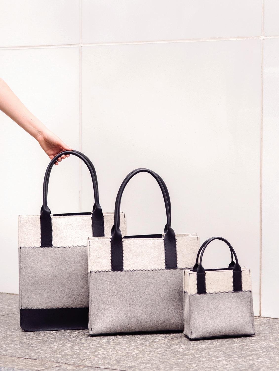 Just like the top seller Hana Canvas, the Hana Tote in felt has a sturdy shape and makes a perfect everyday bag. It features leather trim, an interior pocket and a nickel snap closure.