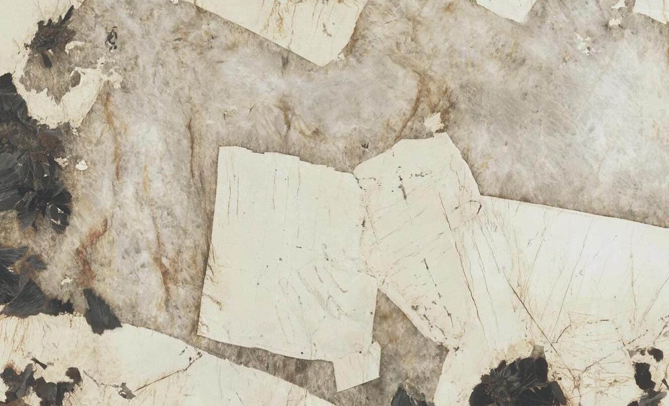 Sand/lys grundfarve med udtryk i naturlignende aftegninger/åretegninger.
