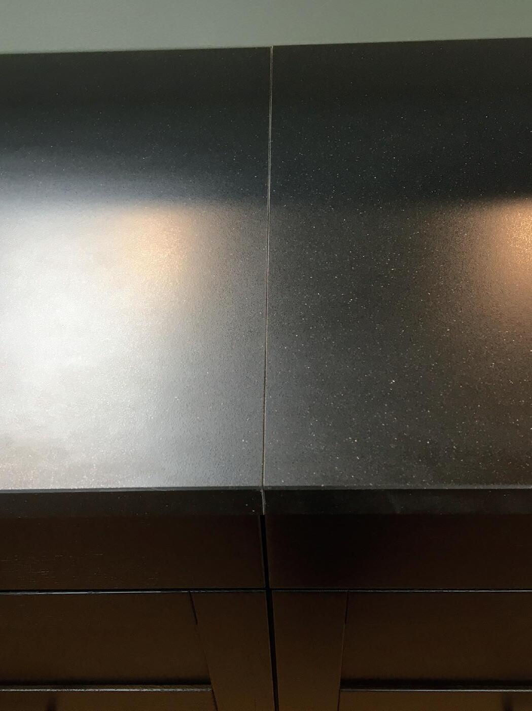 Ved gentagen eksponering for vand, især i områder ved køkkenvask, kan vand trænge ind i overfladen af kvartsit. Dette kan forårsage mørkning af materialet i disse områder over tid. Dette samme gælder ved daglidagsbrug.