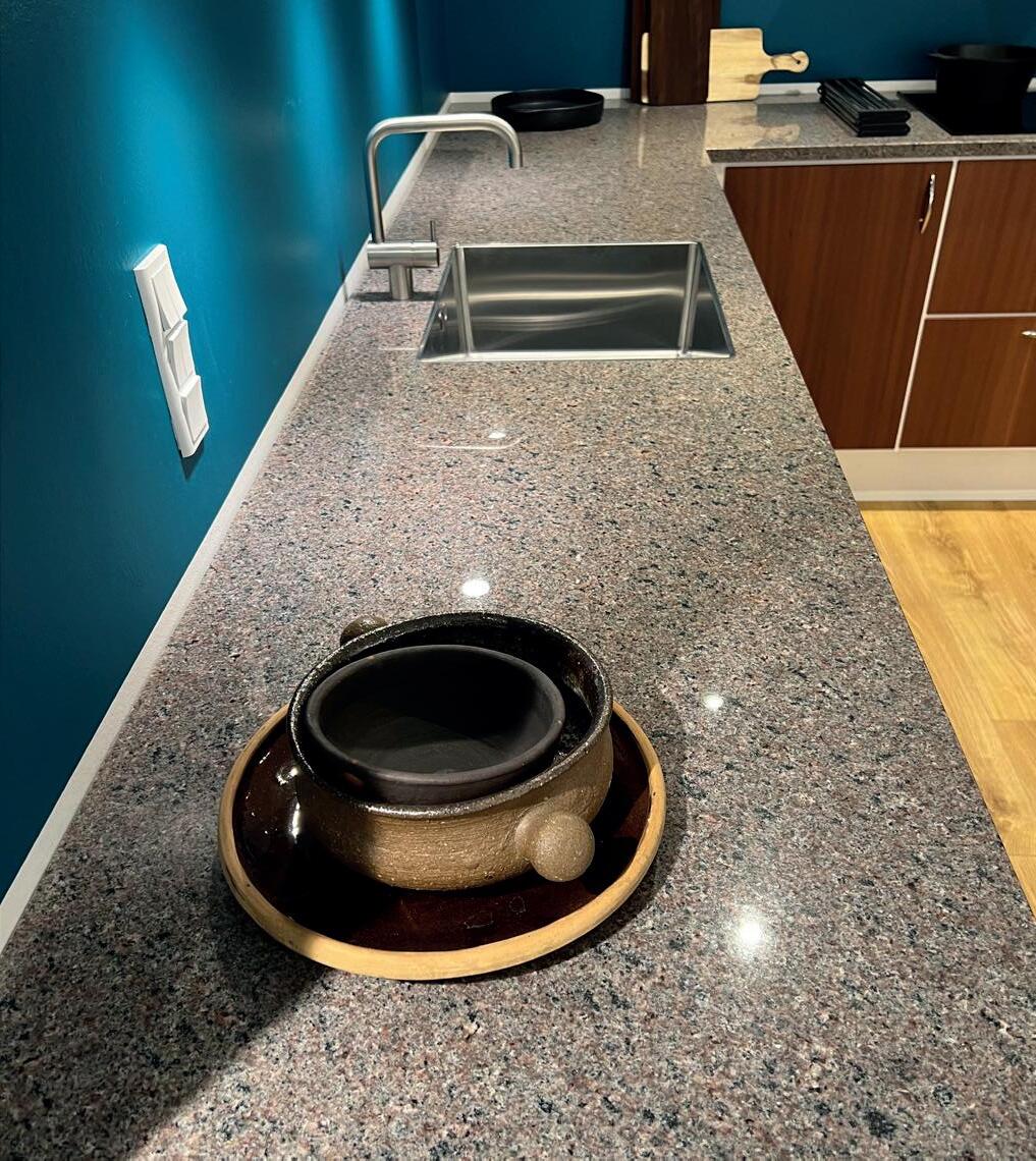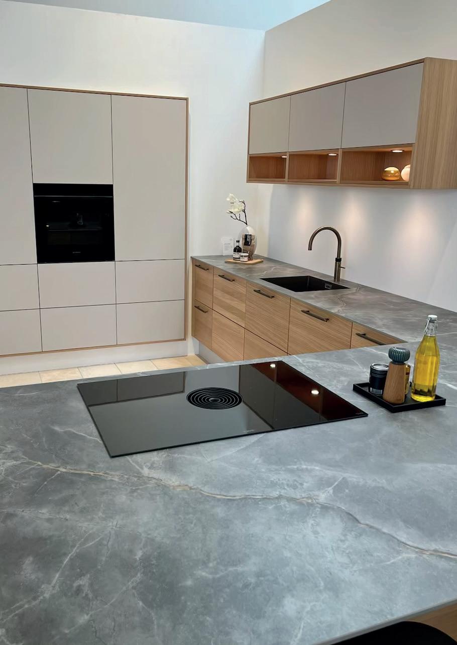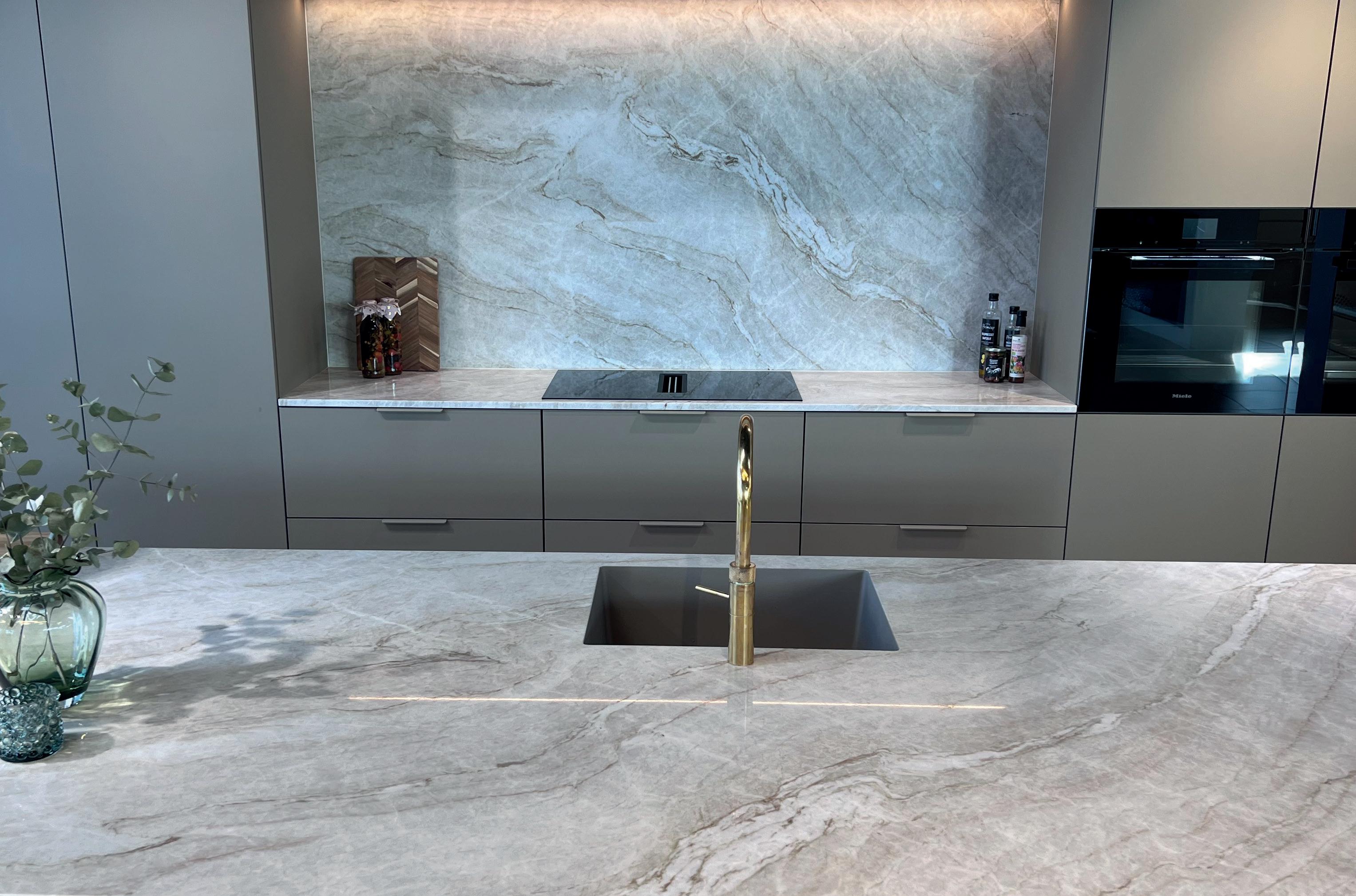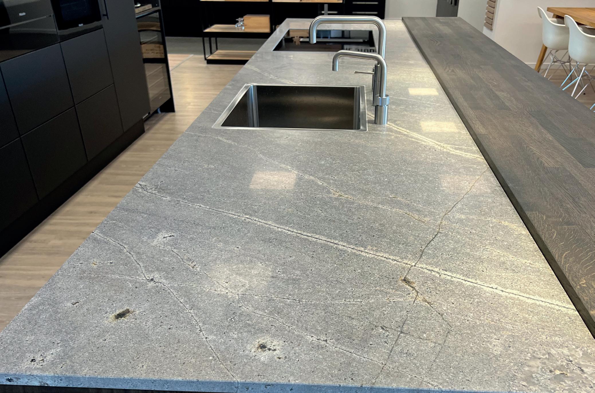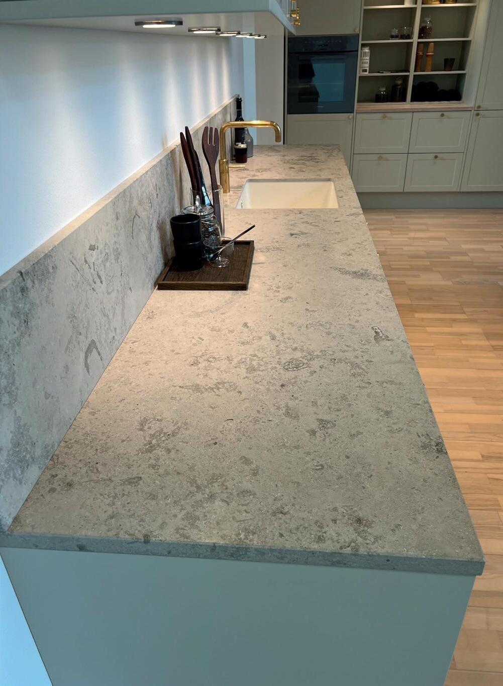 Følgende skal man være klar over når man vælger natursten. Granit, kvartsit og natursten er naturlige materialer, der kan variere i udseende og tekstur. Vores produktion af disse stentyper fokuserer på præcis og professionel bearbejdning, og vi respekterer de naturlige variationer, pletter og kontraster, som er en del af stenens unikke karakter. Vi tilbyder muligheden for at besigtige råpladen for at vurdere farve og struktur, så du kan godkende materialet, inden produktionen påbegyndes. Det er vigtigt at koordinere denne besigtigelse med din køkkensælger for at sikre, at dine forventninger og krav bliver imødekommet.