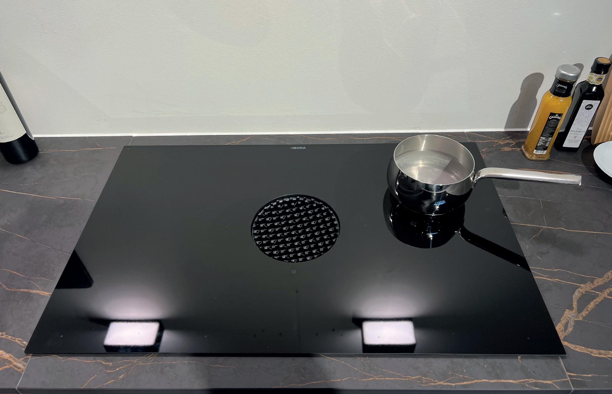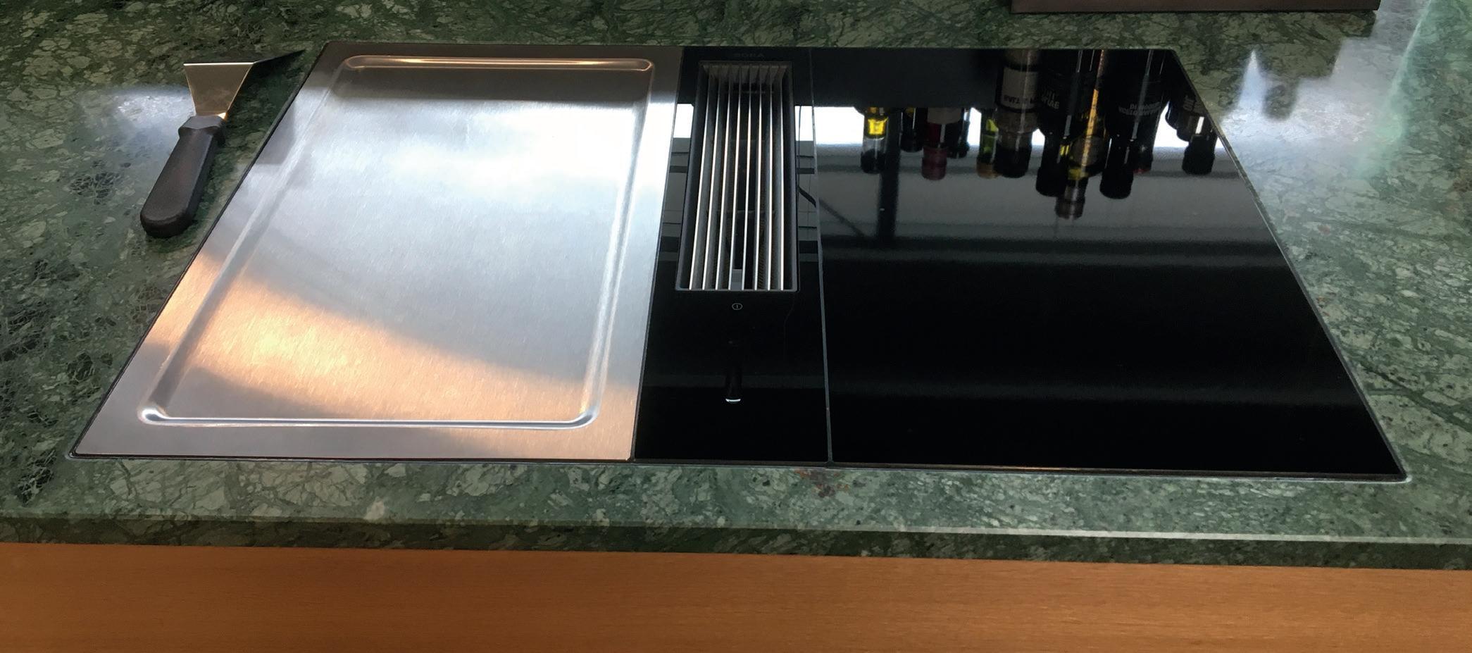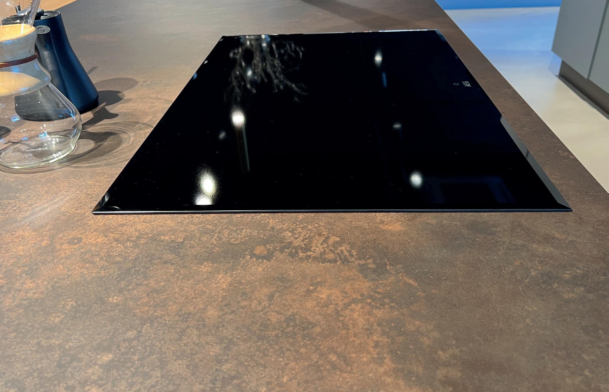 Kogepladen ligger på niveau med bordpladen (ca. 1 mm under overfladen af pladen)